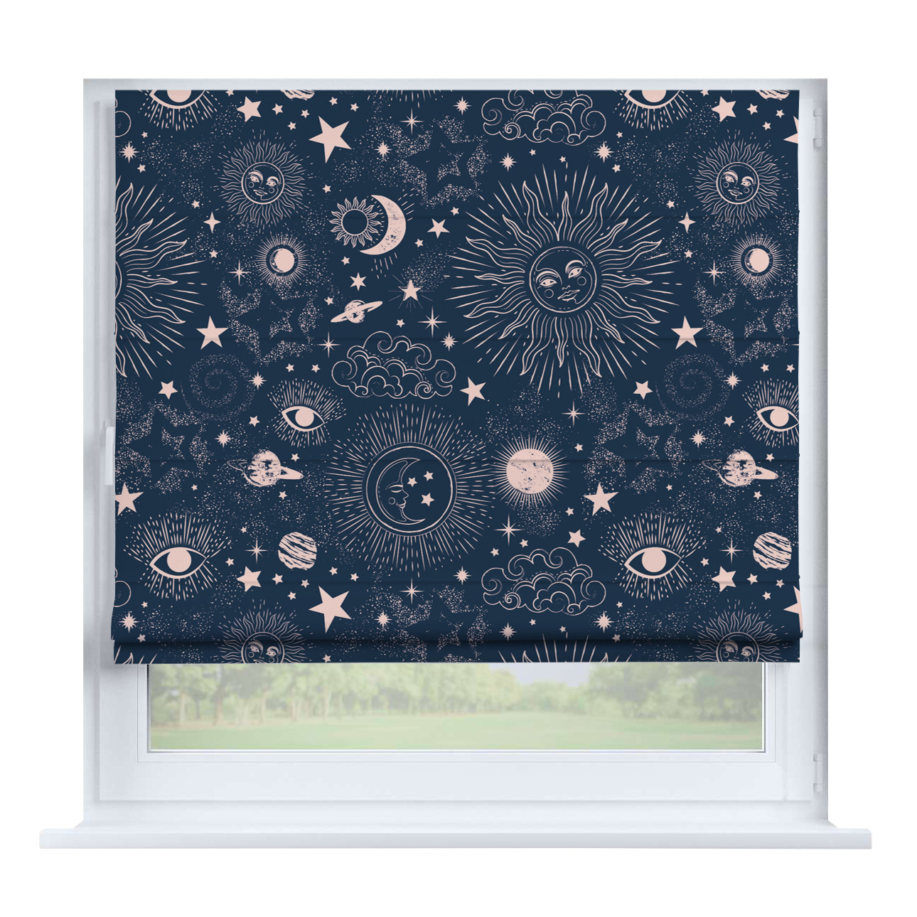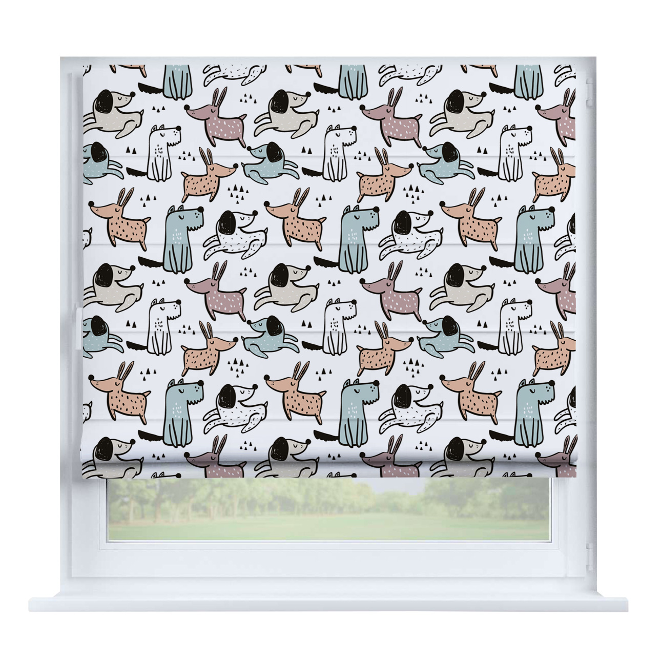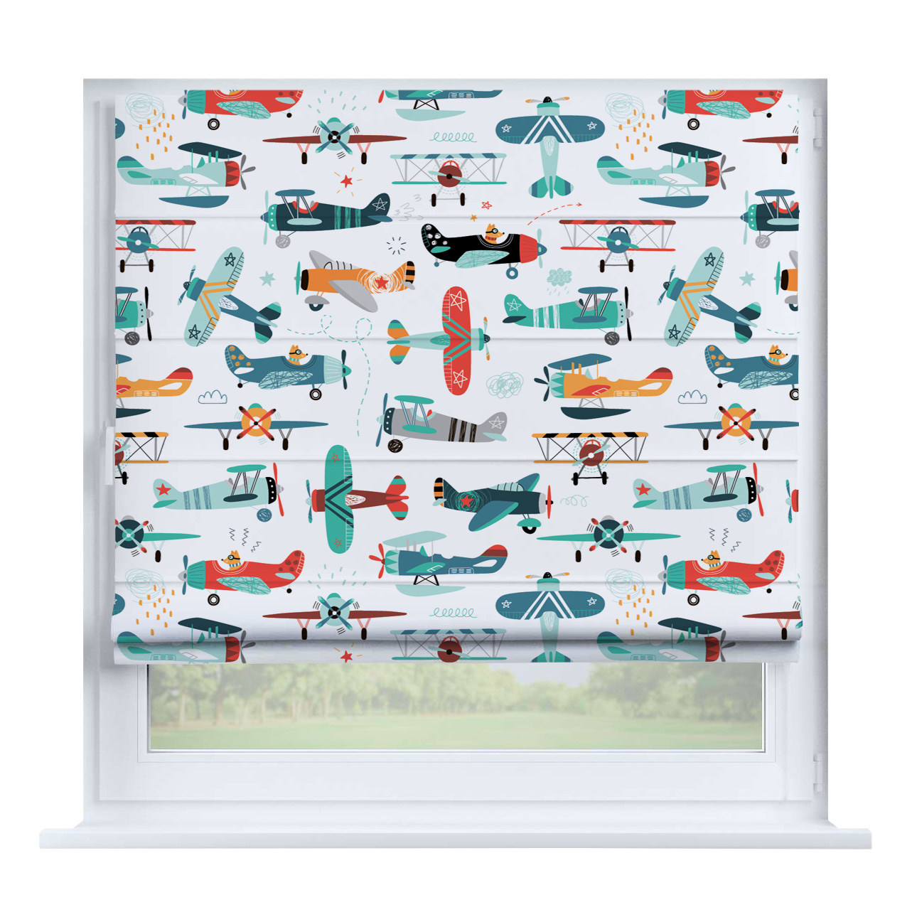 Римская штора на створку «Забавные детали», карниз верёвочный